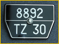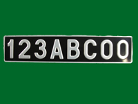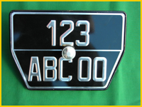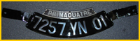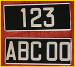 J'ai également d'autres formats de plaques non présentés sur le site Internet : Américaines noires jaunes ou blanches, Moto longue ou carrée, Lambretta-vespa, 4cv arrrière (modèle présenté ci-dessous), Dauphine arrière, DS avant seconde génération (en 2 parties) et DS 3ème génération (longues avec trou pour la manivelle).