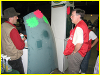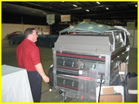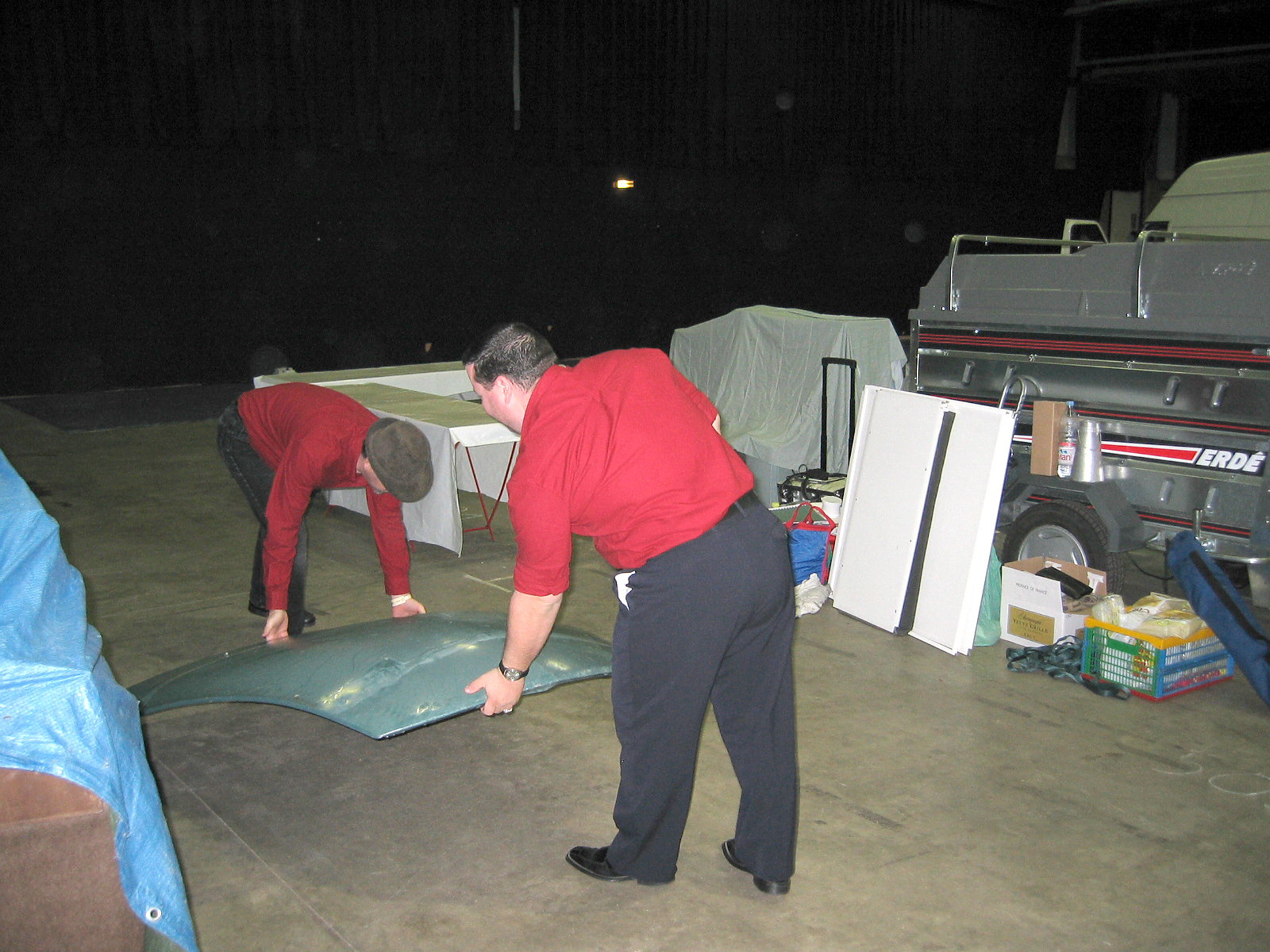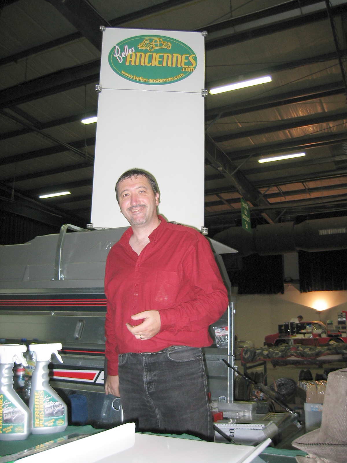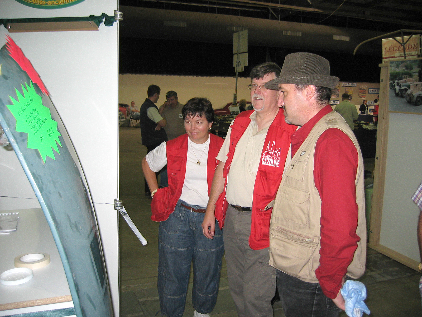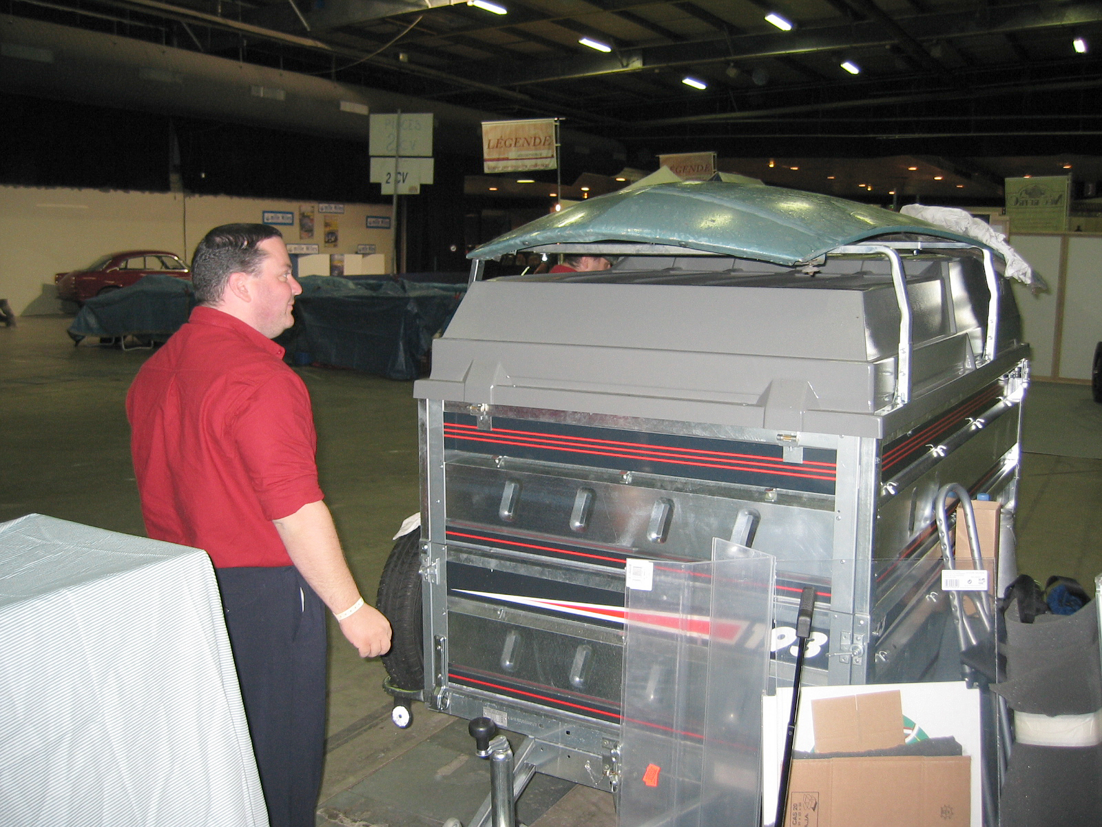 Et voici le stand terminé 20mn avant l'ouverture. On aura le temps de se prendre un café... Le capot à même ses premières traces de nettoyage de la peinture.