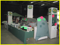 Le stand commence à prendre forme... Les vitrines sont déjà en place et les produits commencent à envahir la table de présentation...